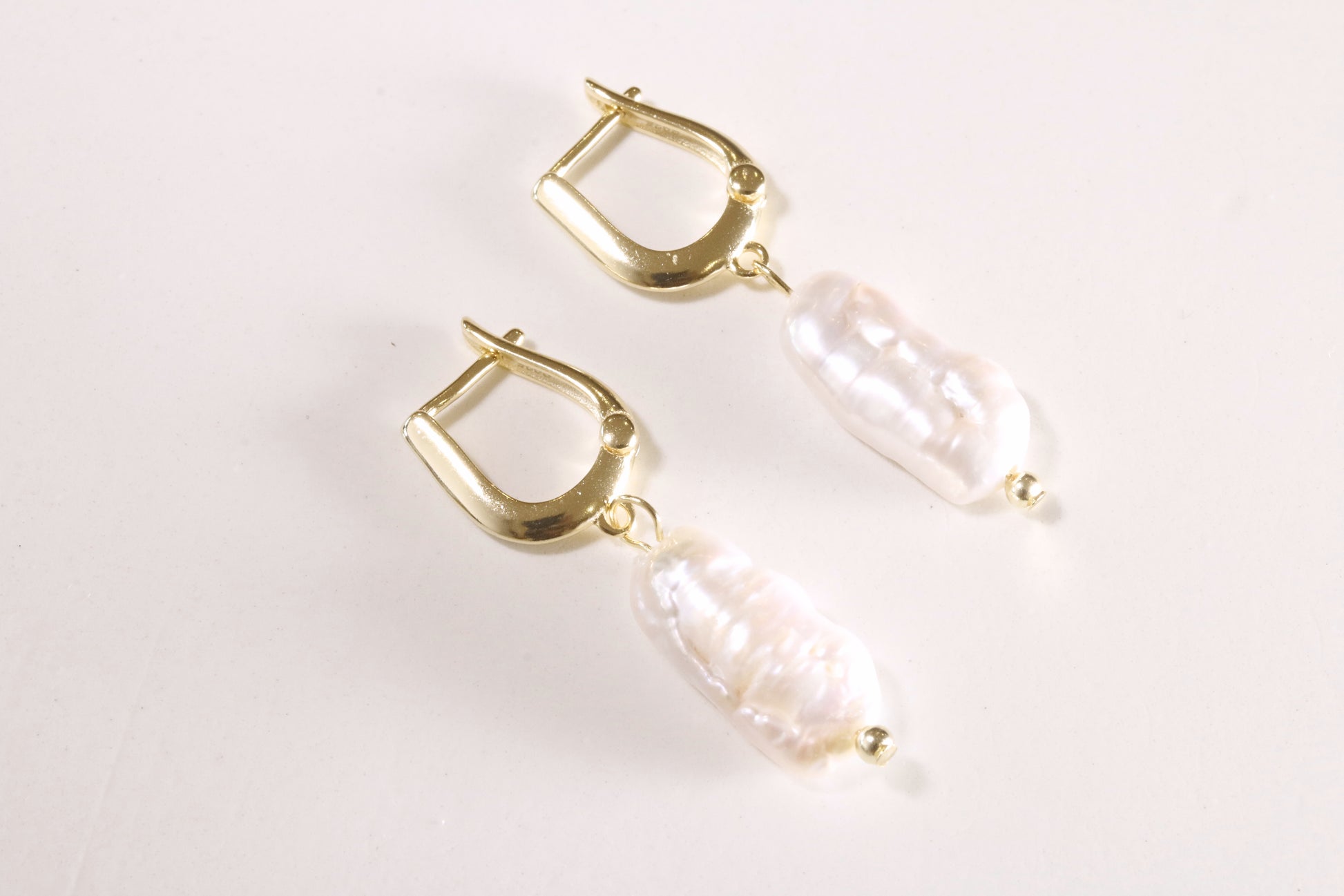 A NIX&NOA twist on a huggie - with a natural long rectangular pearl making these earrings beachy, clean and perfectly imperfect.