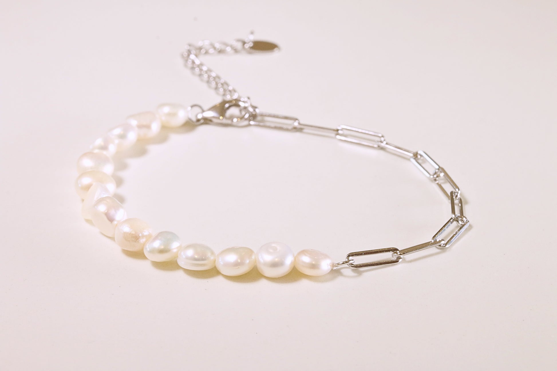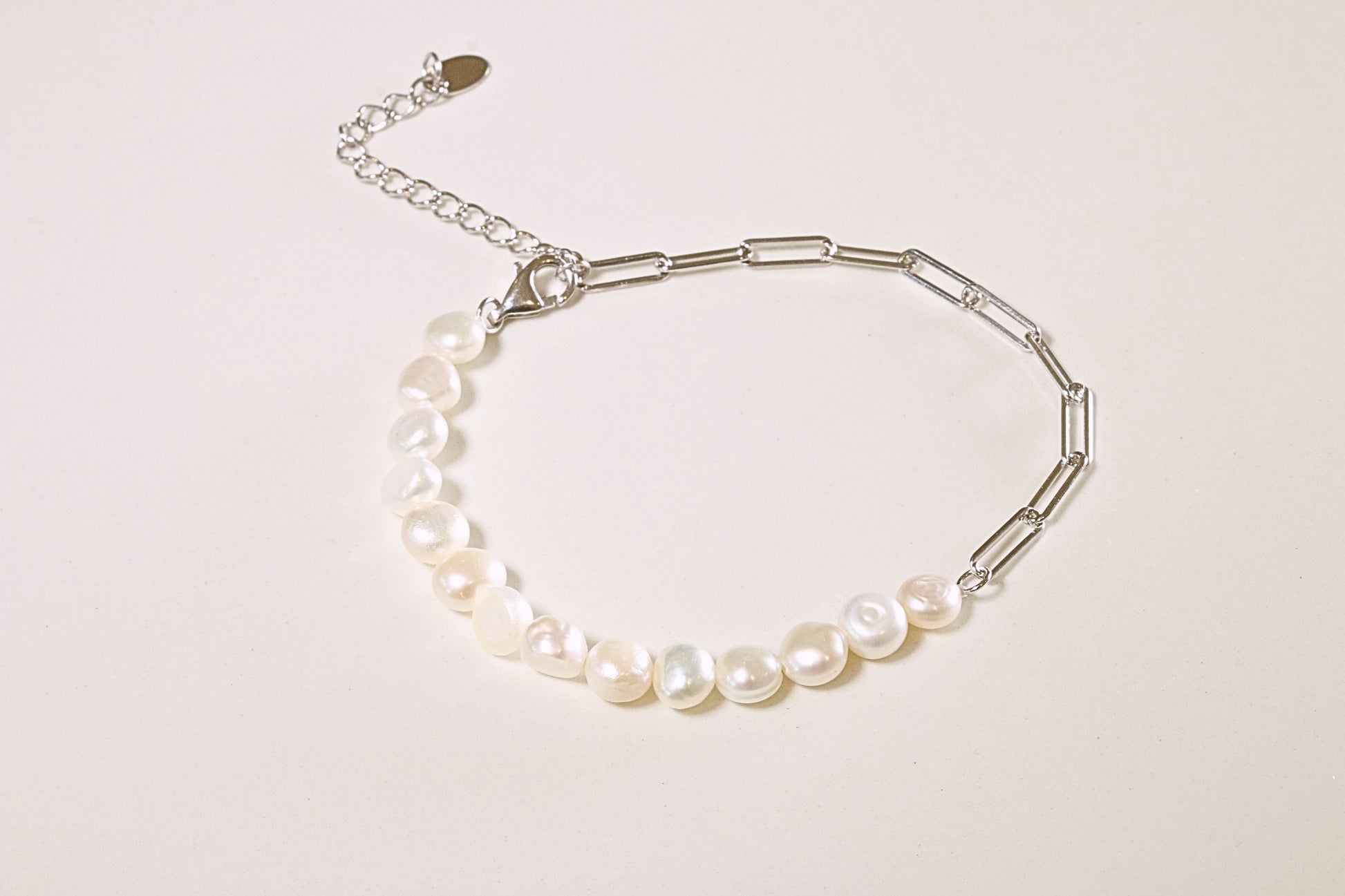 - Sister product to the Gold Fresh water Pearl link bracelet.