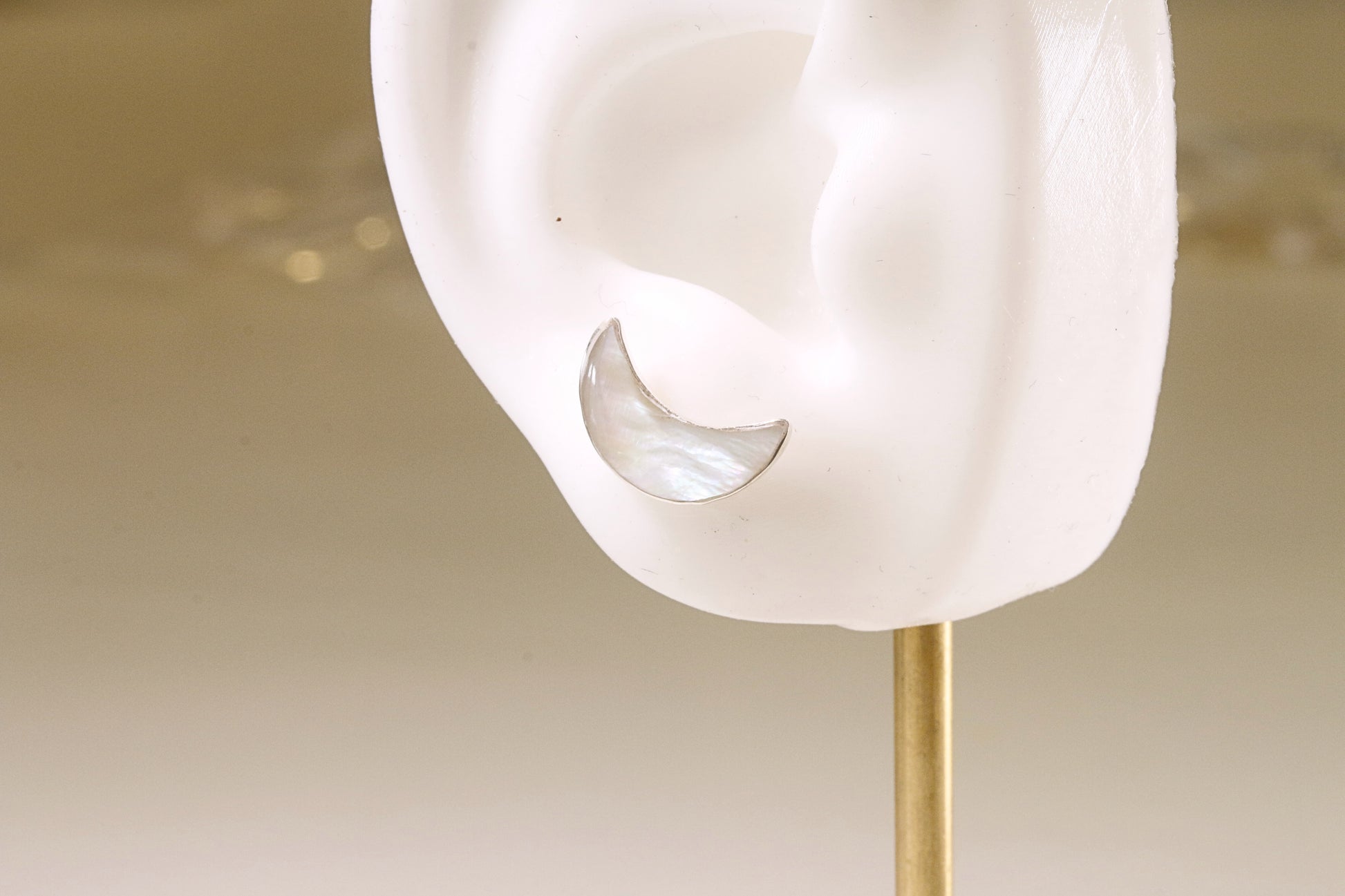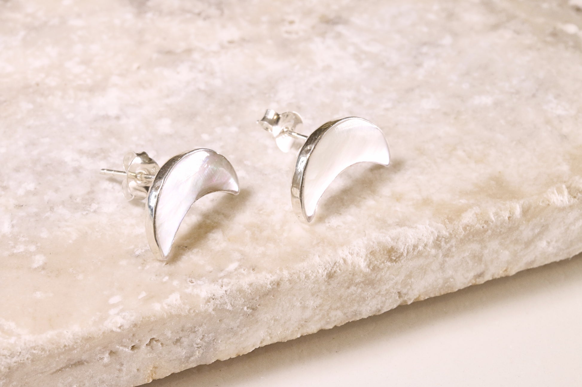 The moon is magic! and so are these studs - crescent moon push back studs, decorated with shell.