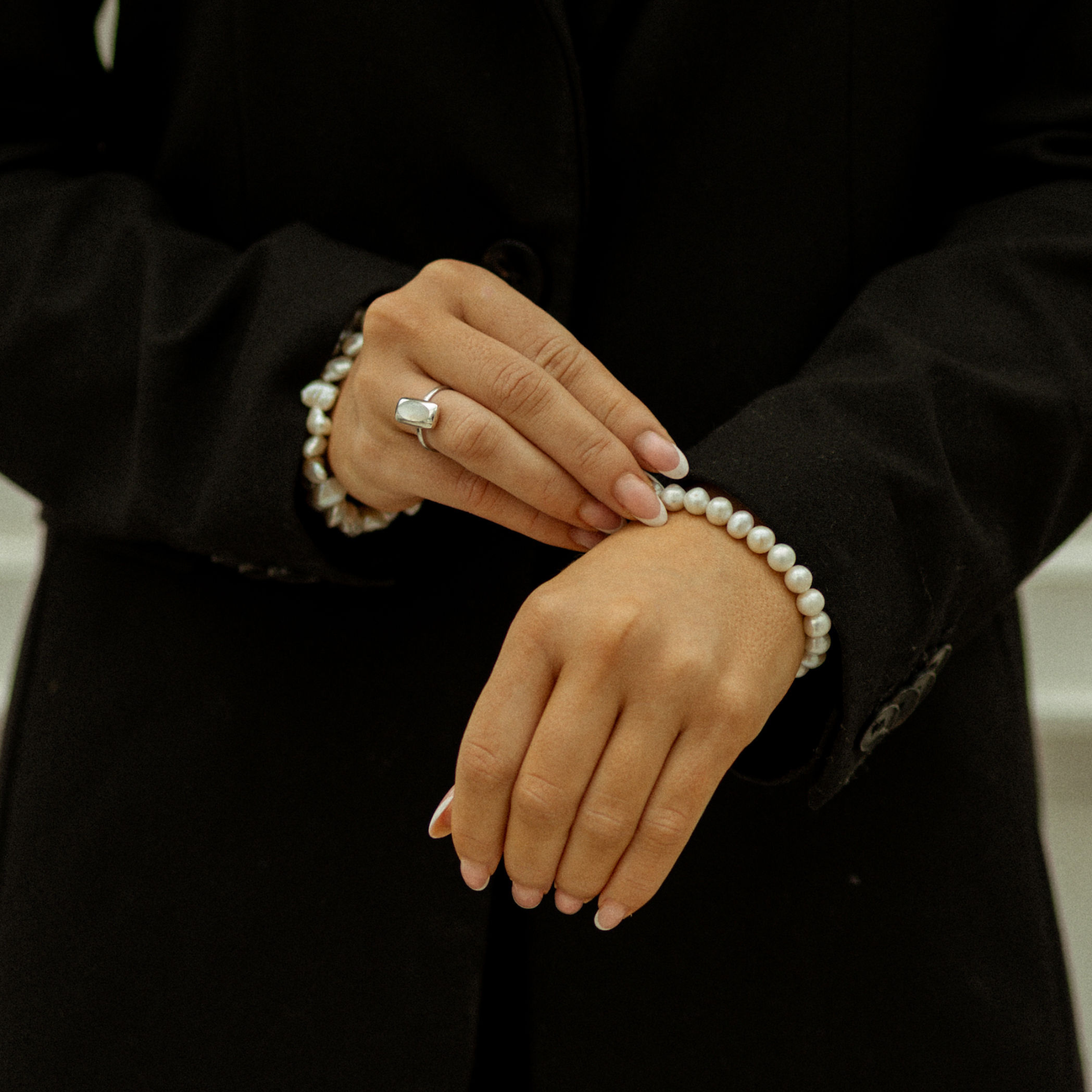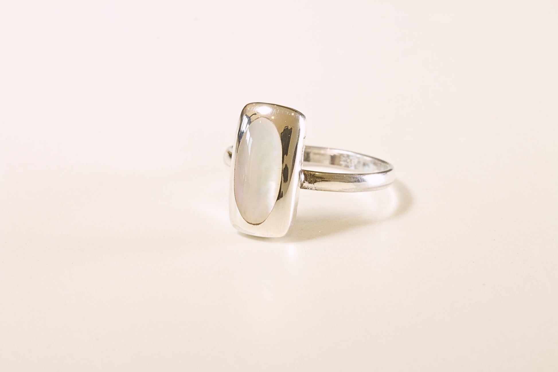 Sterling silver rectangle ring, decorated with a beautiful piece of shell - this ring is best worn by itself, the shell catches the light helping this ring really POP when it is worn on the hand.